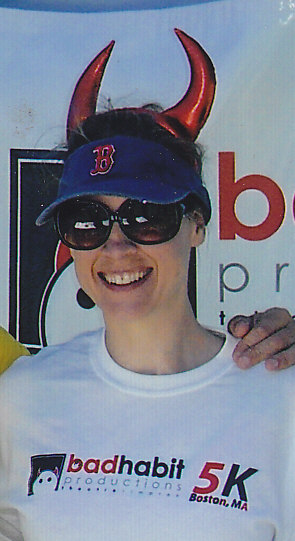 Turns out the race was to help raise funds to support “badhabit productions” theatre and improv in Boston. Check them out at www.badhabitproductions.org . As you can see I was able to get a photo with Dan, myself, Julie, and Mary in their booth.