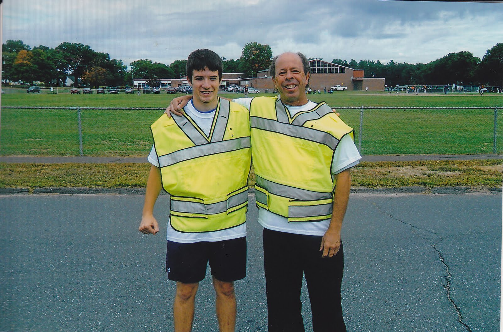 Ok all you—MEN—that continue to talk about how great an athlete you “USED” to be, except, now all you have is excuses as to why you can’t get into shape. I don’t want to hear anymore of your excuses and neither does Dina. Dina has more guts and determination than all of you couch potatoes added together and multiplied by 1000. As you can see in the bottom photo I got to experience the 1st Annual Dick Atkinson 5K from a helper’s point of view. Nick and I were given yellow vests and told to “go play in traffic”. “And since we were in the traffic” we were asked to direct it while the runners were running past.