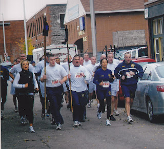 There were many people involved in law enforcement at the Mickey Ward Run this year. There was however a “stand out” group that ran. The Lowell Police Academy cadets and their supervisors/trainers came to the road race on November 7th. I know they go to other races during the year, but, with the funds from this years race going to a fallen officer’s widow, it made their appearance just that much more special.
